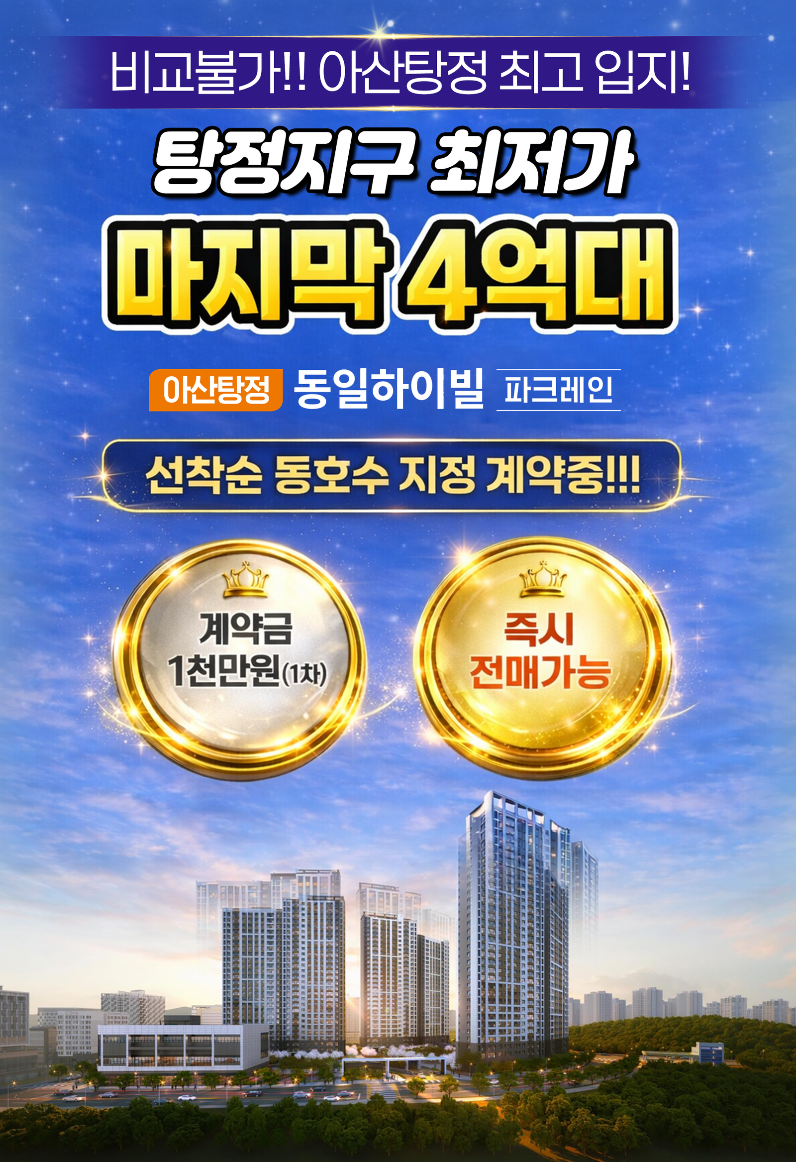아산탕정 동일하이빌 파크레인 방문예약 고객의 개인정보를 수집합니다. 수집한 개인정보는 방문예약 이외의 목적으로는 사용하지 않으며,모집 기간 완료 후 즉시 파기합니다. 개인정보의 수집 및 이용에 대한 동의를 거부할 수 있으며, 이 경우 방문예약 접수가 어려울 수 있습니다.